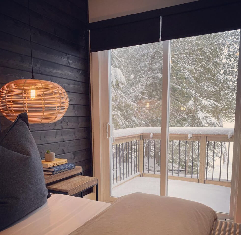 Des toiles de fenêtre sur des portes vitrées coulissantes dans un décor minimaliste