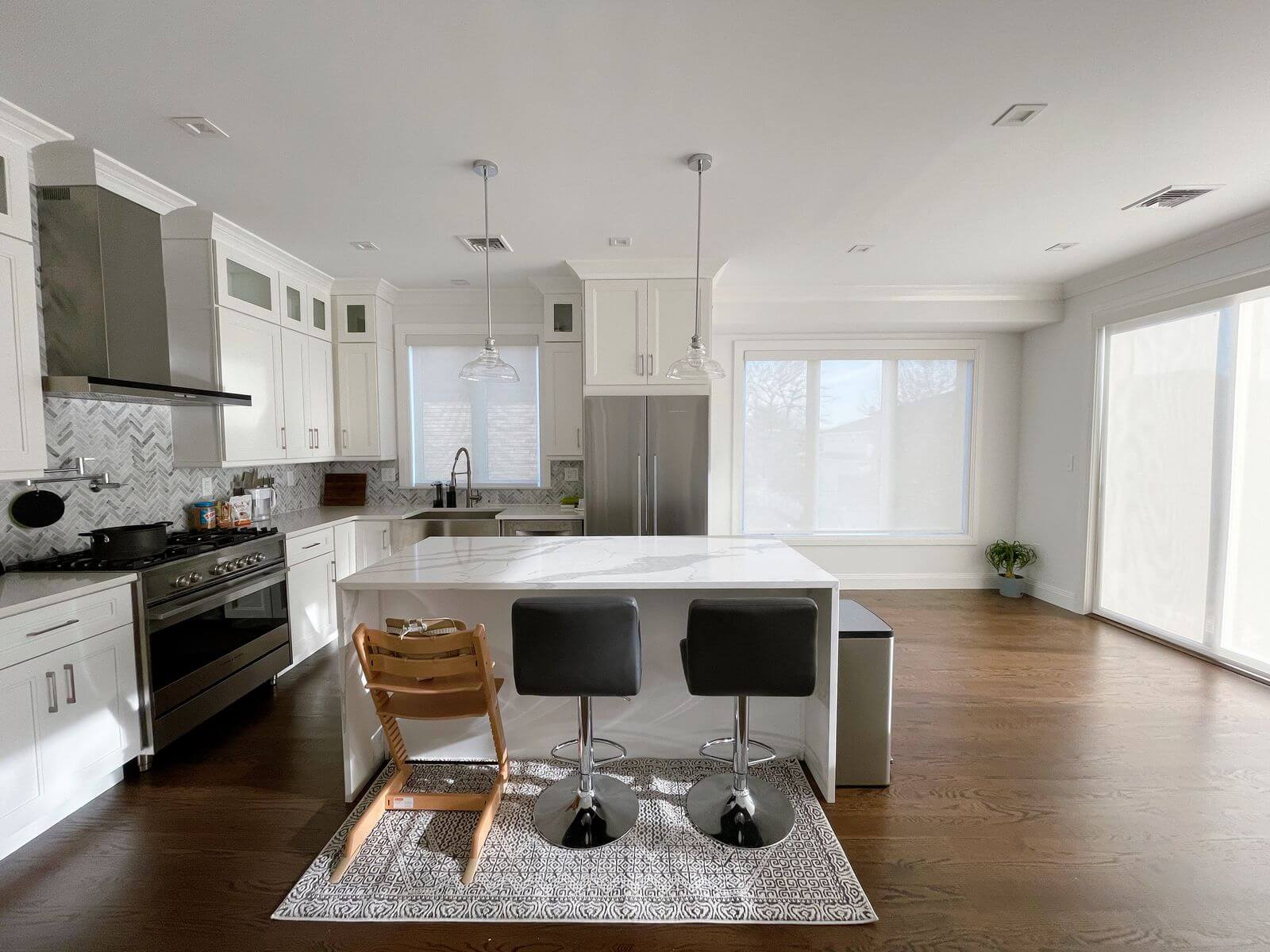 Les toiles de fenêtre créent un style épuré et minimaliste, ce qui les rend parfaitement adaptées aux espaces modernes et contemporains. Leur conception élégante et leur esthétique discrète en position entièrement ouverte créent un aspect apaisant et visuellement épuré. Comme leur style est fluide et désencombré, elles apportent une touche de modernité à toute pièce équipée d’une porte vitrée coulissante. Contrairement aux stores verticaux, les toiles de fenêtre peuvent être motorisées à l’aide de commandes vocales, d’un appareil intelligent ou d’une télécommande. Voilà qui est résolument moderne et utile dans des espaces équipés de plusieurs grandes fenêtres ou de portes vitrées adjacentes à des fenêtres.